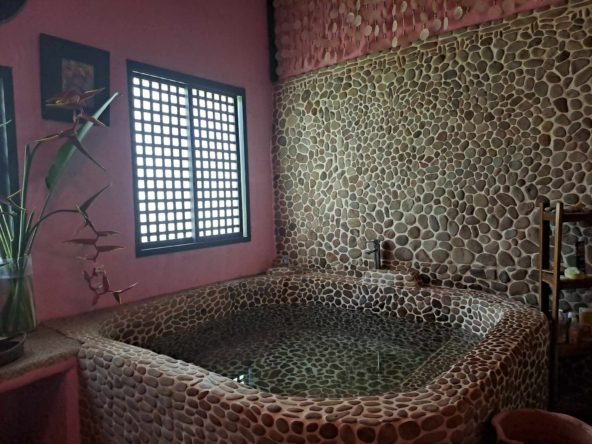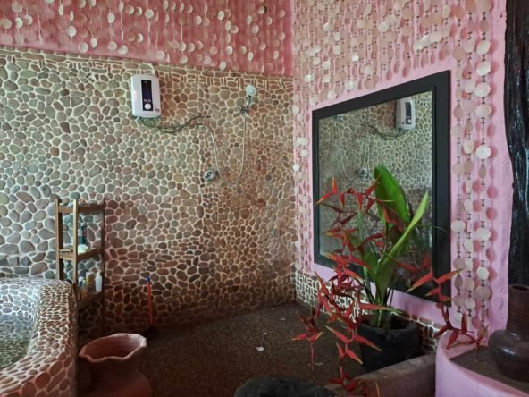 Property Overview: Nestled amidst the lush natural beauty of Barangay Bacungan Puerto Princesa City Palawan Philippines, this charming 140 sq m bungalow embodies French design aesthetics with a unique fusion of wood and concrete. Set against the picturesque backdrop of a meandering river, this property offers a tranquil escape from the everyday hustle and bustle. With a spacious open room, living area, luxurious bathroom, and a variety of fruit trees and exotic plants, it’s a perfect blend of comfort, nature, and convenience.